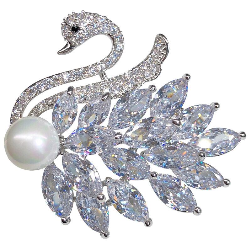 ハイエンドクリスタルジルコンブローチレディース気質白鳥コサージュブローチシンプルなコートスーツカーディガンアクセサリー shipin1368781982