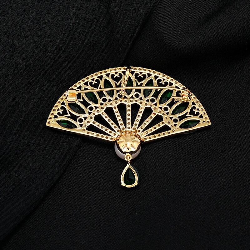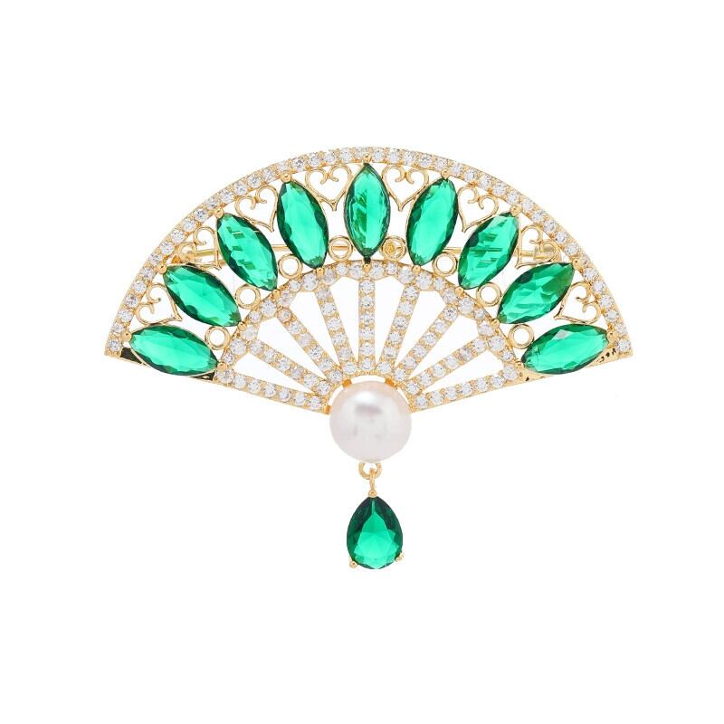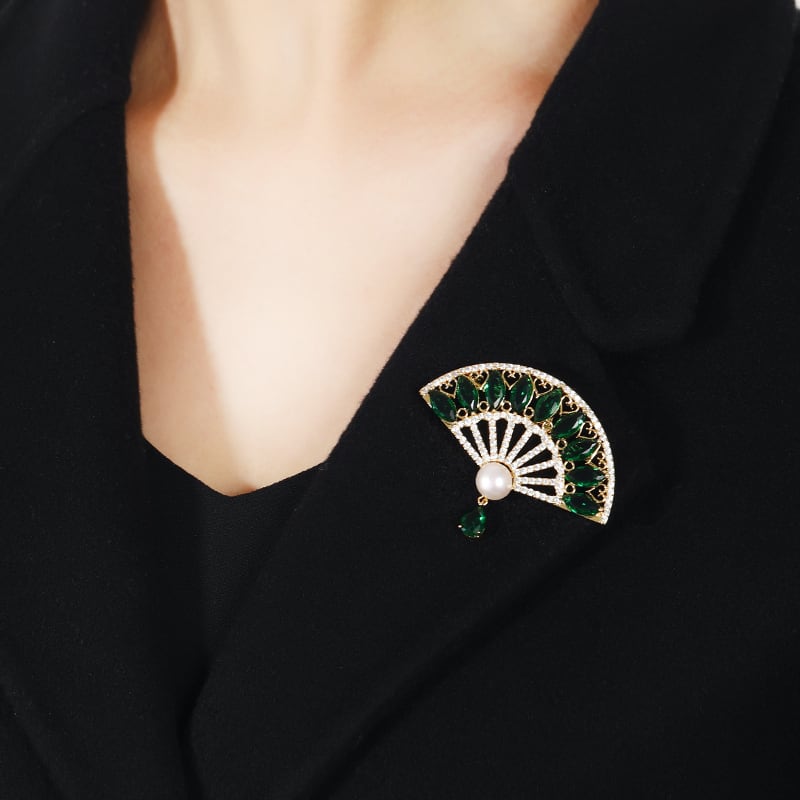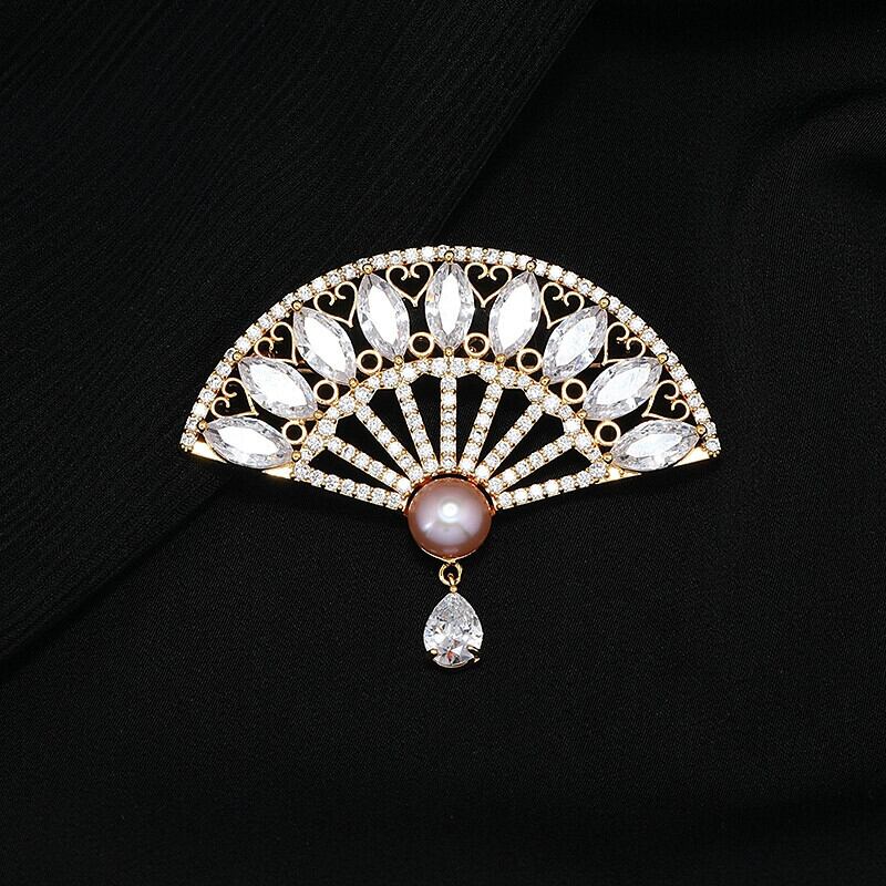 -エンドクリスタルファン淡水パールブローチ女性エレガントレトロハイエンド気質チャイナピンスーツアクセサリー 真珠 shipin21914968689