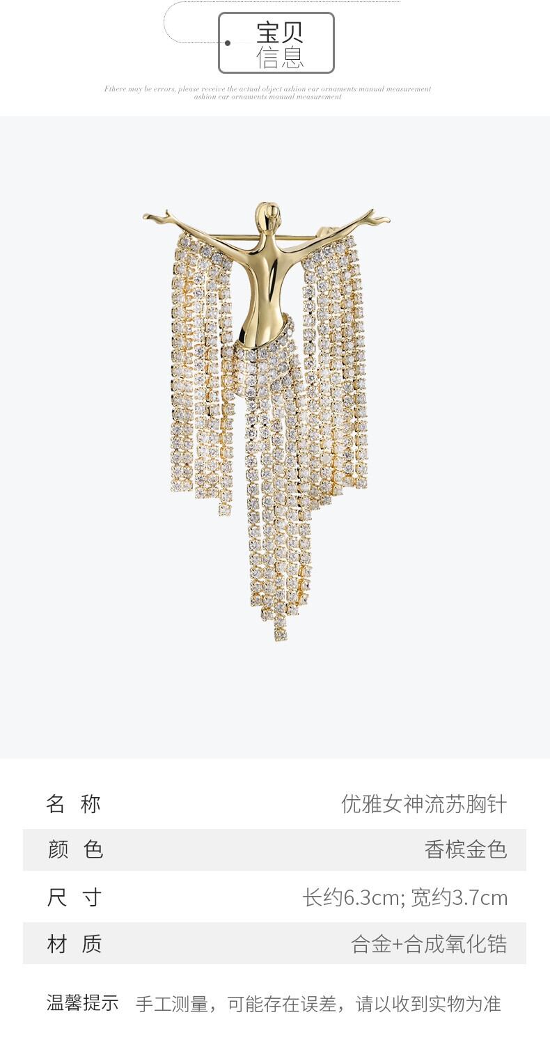 エレガントな女神ダイヤモンドテル気質ブローチ秋冬コートスーツ高級コサージュシンプルな個性アクセサリー オータム 秋物 ウィンター 冬物 shipin24997286748