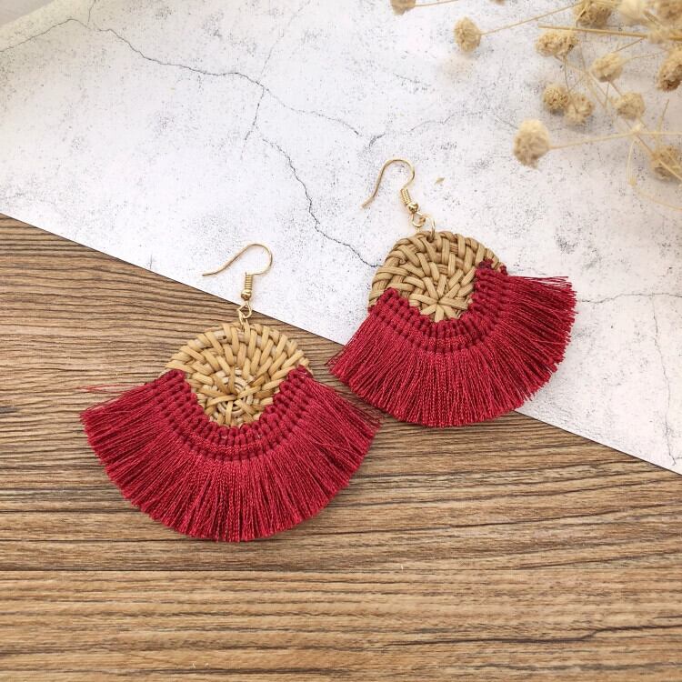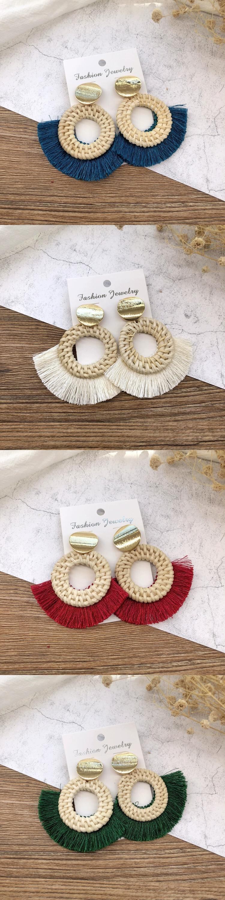 ese とホリデースタイルの手作り gr と籐編みイヤリングレトロテルシンプルなイヤリング気質多用途女性ネットレッドイヤリング 指輪 shipin21031549206