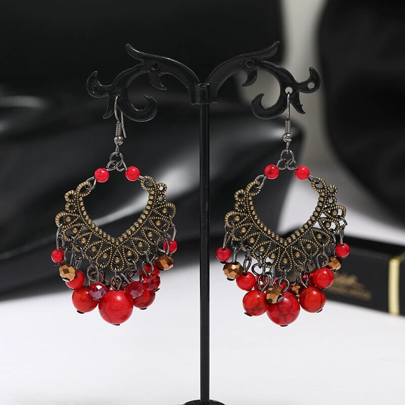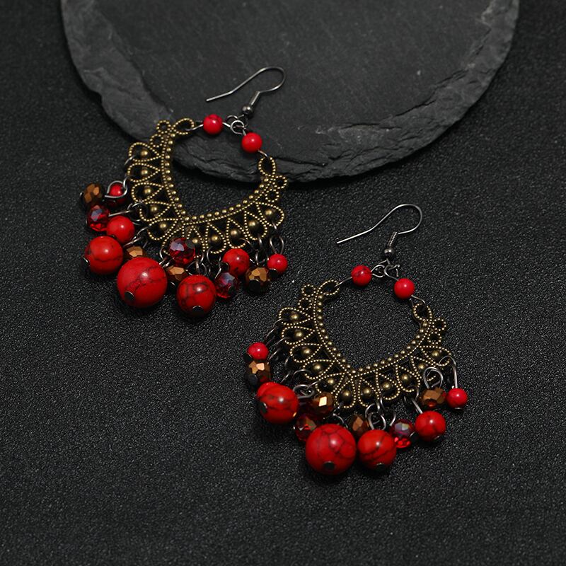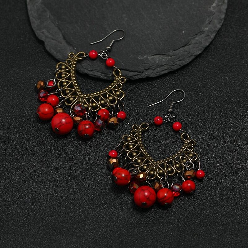 手作りヨーロッパとアメリカのレトロなレッドテル気質イヤリング女性の多用途エレガントな個性エスニックスタイルのイヤリングチャイナドレス 指輪 ヨーロピアン shipin70216487157