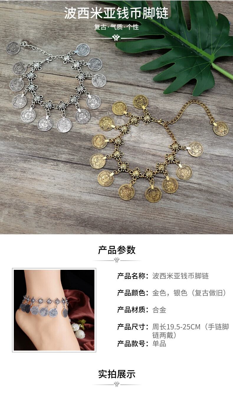 ヨーロッパとアメリカのレトロコインアンクレットパーソナリティヒッピーボヘミアンホリデーダンスミュージックフェスティバルブレスレットを輸出 ヨーロピアン shipin75024049021