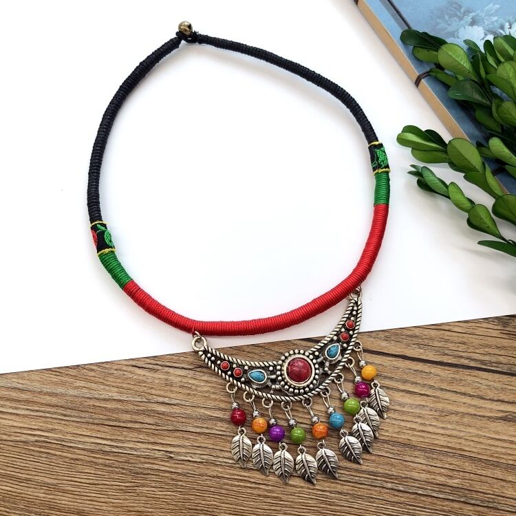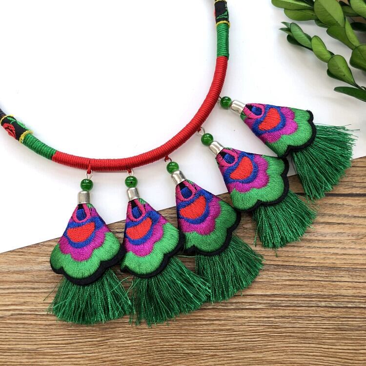 手作りレトロエスニックスタイル刺繍テルショートネックレス女性オールマッチ人格ベルネックレスパーマンスパーマンスネックレス レース shipin68382933560