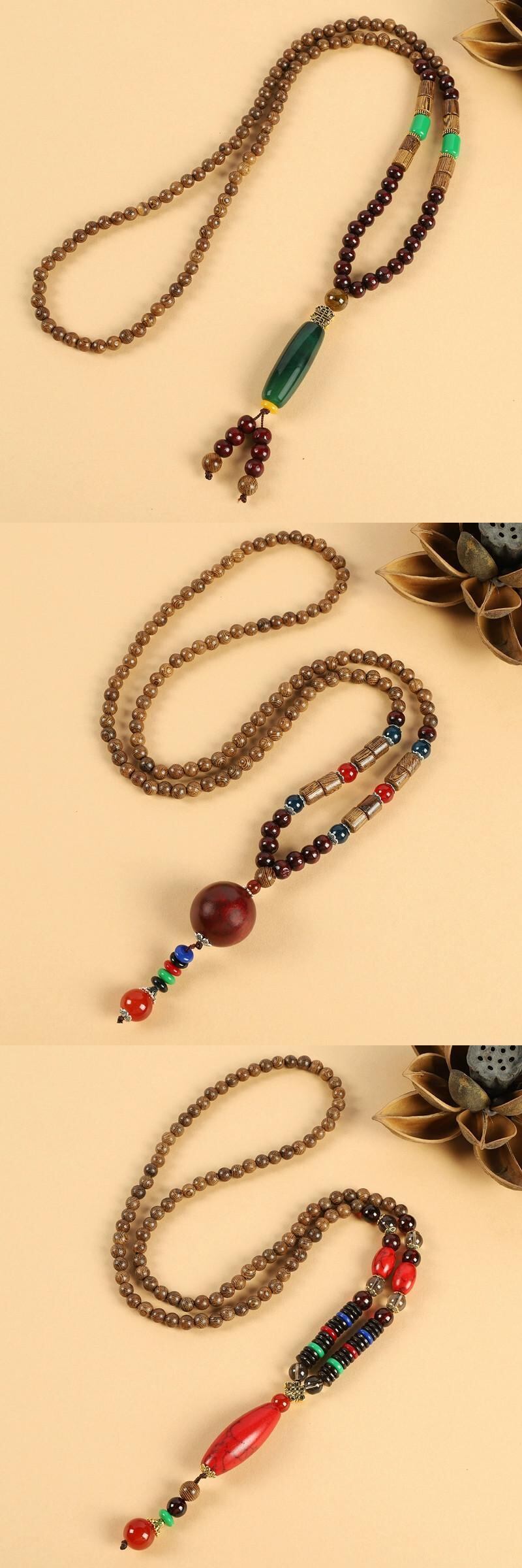レトロエスニックスタイル多用途男性と女性のセーターチェーンロングセクショングレード木製ペンダントビーズネックレスペンダントコットンとリネンアクセサリー レース shipin16401090941