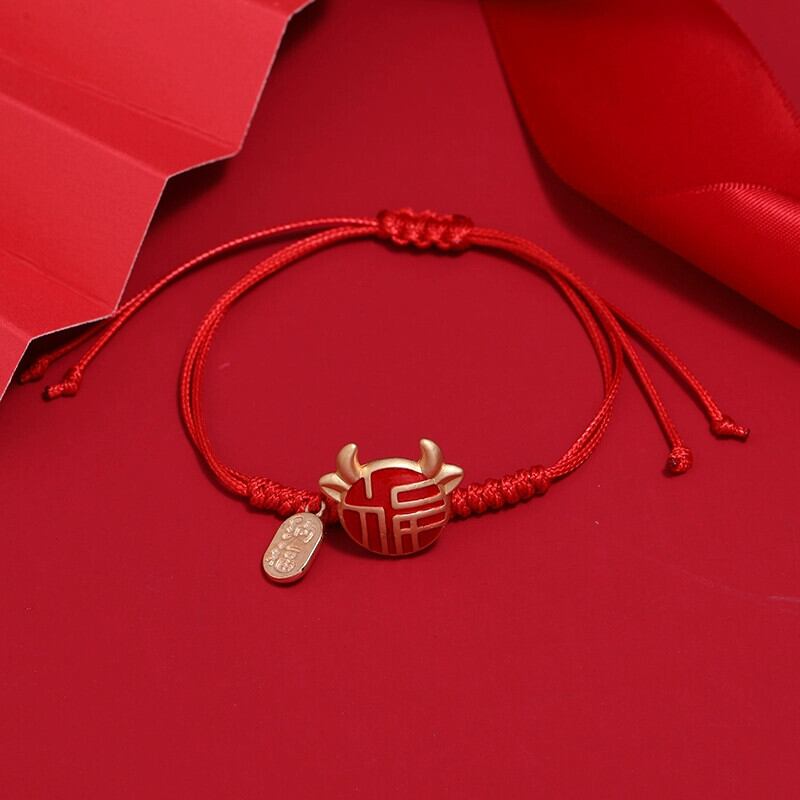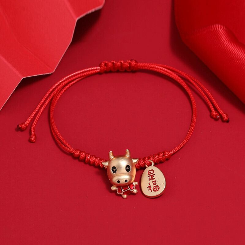 手織り干支年赤いロープラッキー牛ブレスレット女性ラッキーカーフ干支ハンドロープ多用途レトロカップルジュエリー レッド shipin59641424968