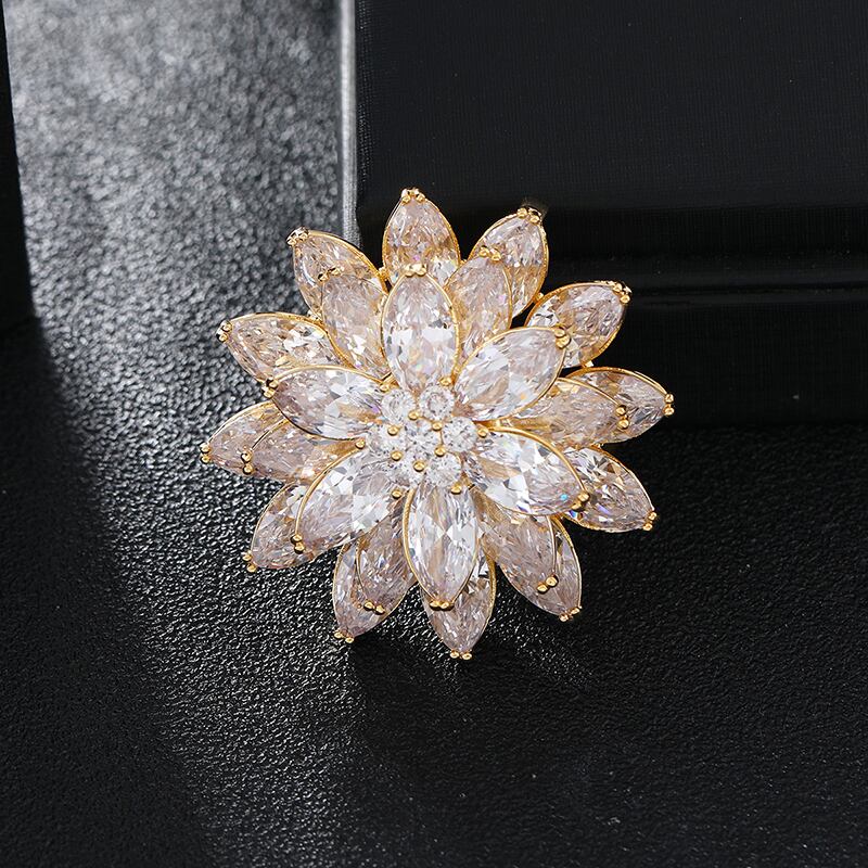 ハイエンドの気質高級クリスタルアイスフラワーブローチ女性エレガントな絶妙なコサージュブローチスーツコートアクセサリー フラワーデザイン shipin26779045878