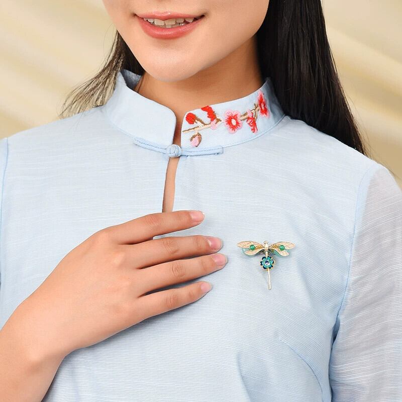 中国風のレトロな文学トンボブローチ東陵翡翠七宝ハイエンド気質スカーフピンニッチアクセサリー女性 ジェード ヒスイ shipin89448816483
