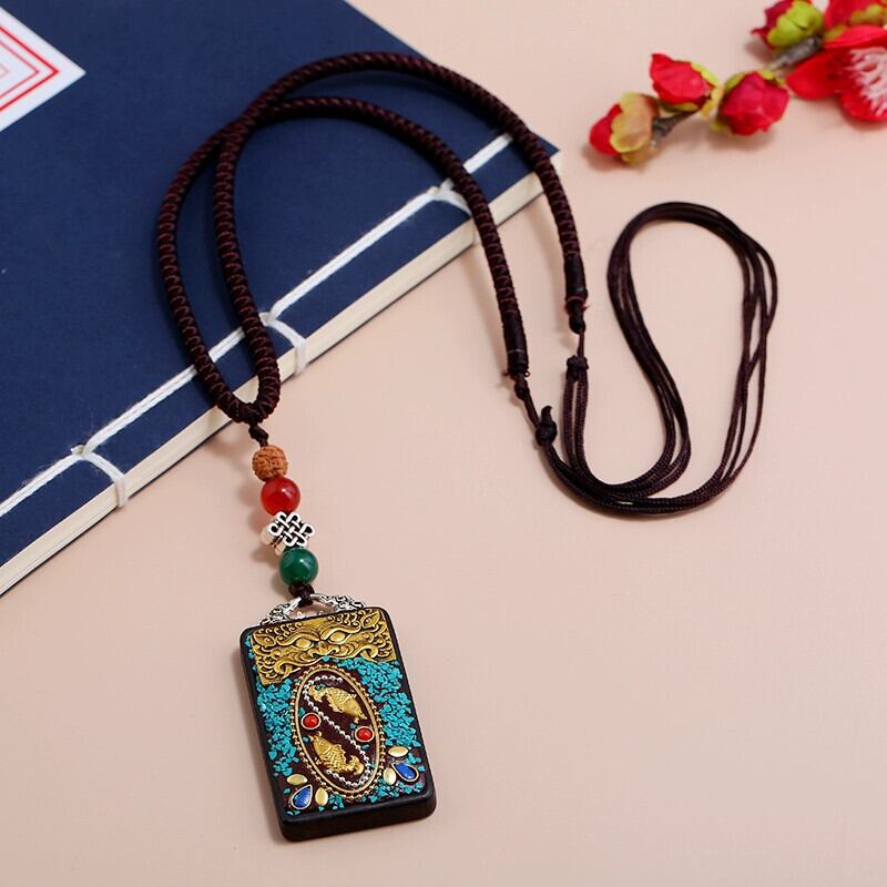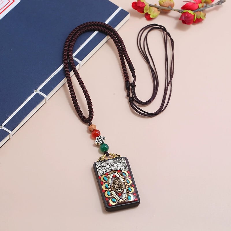 エスニックスタイル黒白檀仏ネックレスレトロシンプルな男性と女性の綿とリネンの服のペンダントネパールアクセサリー ブラック コットン レース shipin58850641550