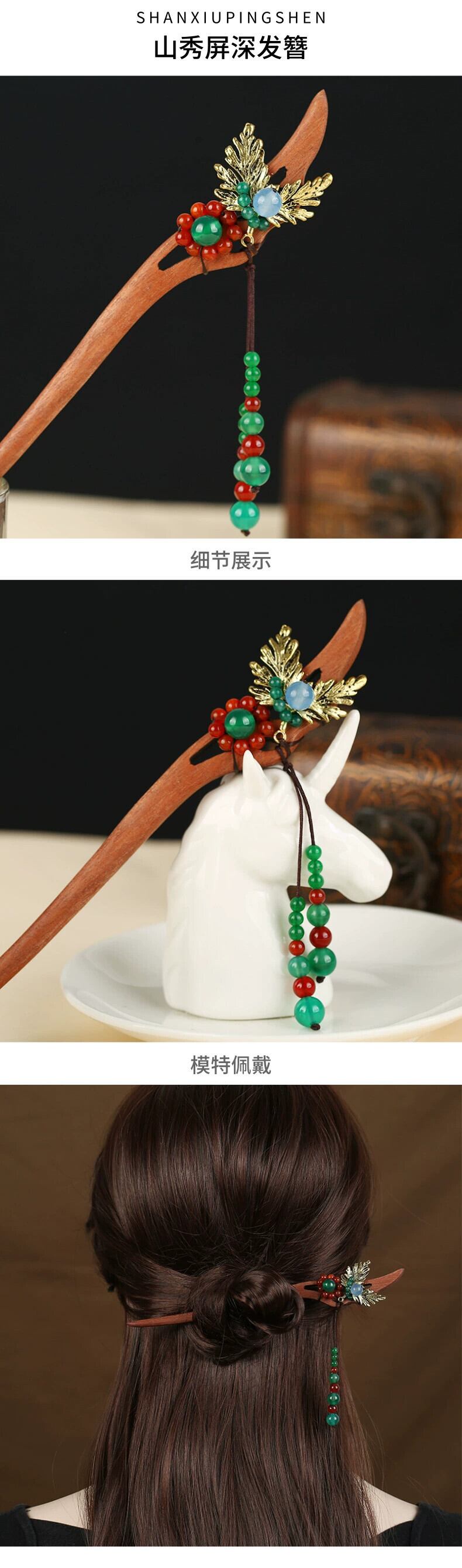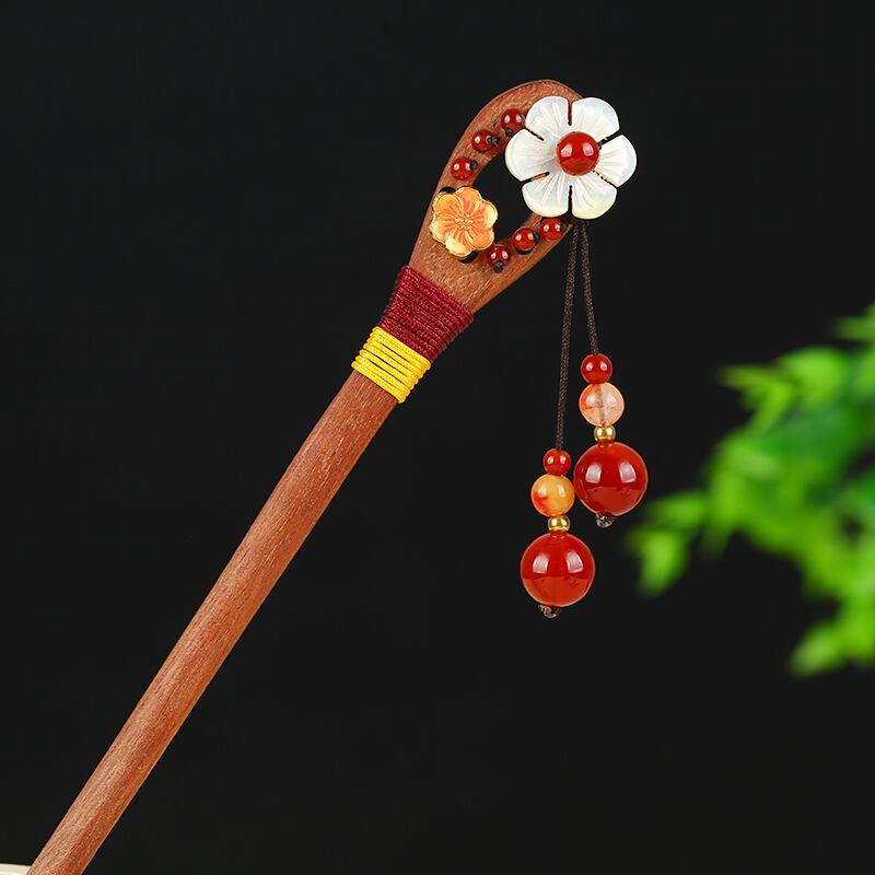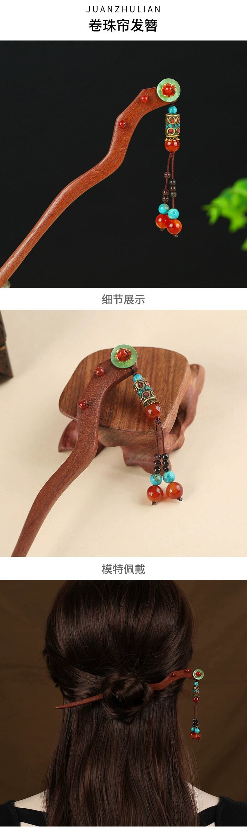 クリカル気質紫檀ヘアピン女性国民スタイルシンプルなステップシェイクテルプレートヘアピン古代スタイルのヘアアクセサリー レッド shipin37373874207