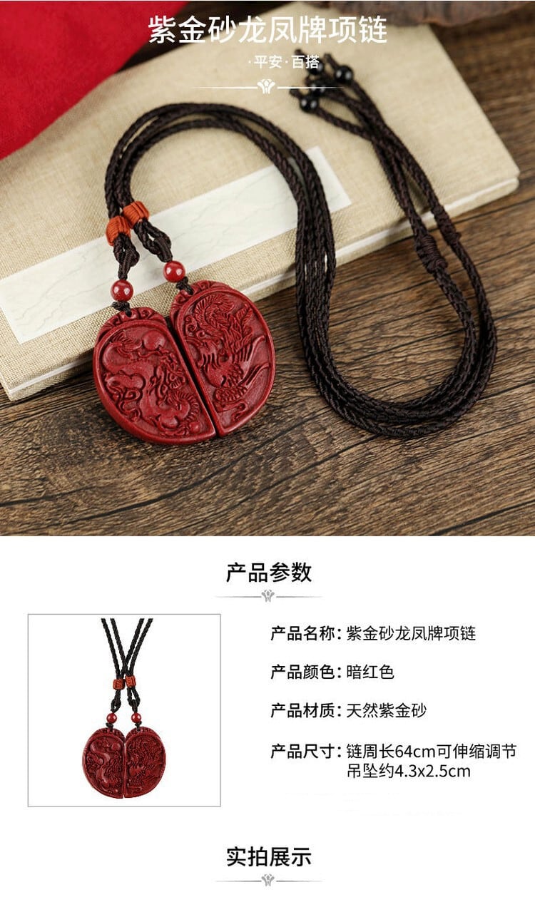 天然辰砂ペンダントカップルドラゴンとフェニックスブランドネックレスハイエンドパープルゴールド砂男性と女性のロングセーターチェーンペンダントアクセサリー レース ナチュラル shipin37650952493
