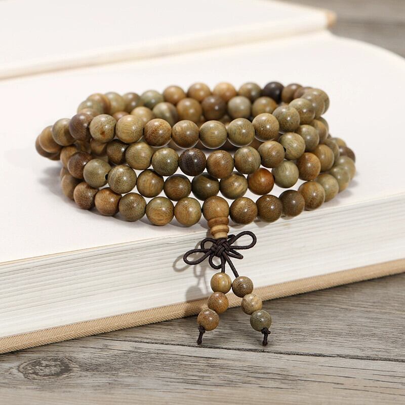 天然緑白檀 108 ブレスレット男性と女性オールマッチ白檀ビーズカップルロザリオテキスト再生エスニックスタイルブレスレット ナチュラル グリーン shipin81399530657