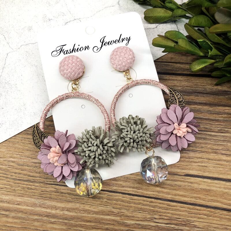 ヨーロッパとアメリカのレトロな手作りフラワーリースイヤリング女性らしさ人格長期休暇イヤリングファッションイヤーアクセサリー ロング 指輪 フラワーデザイン ヨーロピアン shipin20895156081