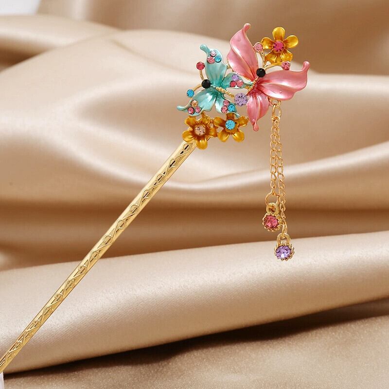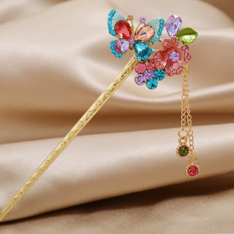 クリカル塗装ファッションダイヤモンドがちりばめられたフラワーテルヘアピン女性の皿ヘアステップロッキングヘアピンナショナルスタイルレトロオールマッチヘアアクセサリー フラワーデザイン shipin41644956223