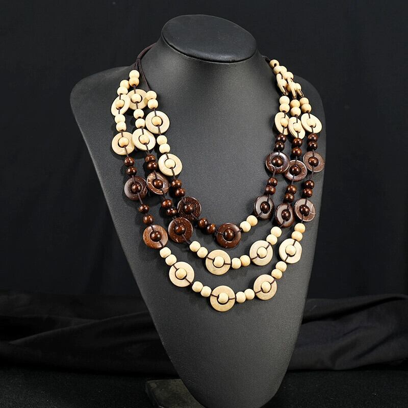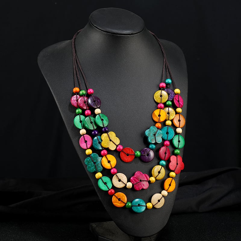 ヨーロッパとアメリカのレトロボヘミアンココナッツシェル木製ネックレス織りロングセクション多層カラフルな女性のセーターチェーンホリデーアクセサリー レッド レース ヨーロピアン shipin67707594060