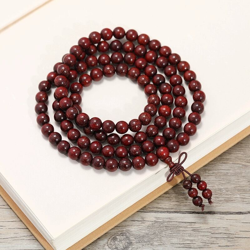 天然ザンビア小葉紫檀手紐血白檀 108 仏教ビーズ男性と女性プレイエスニックスタイルロザリオブレスレット レッド ナチュラル shipin7668946799
