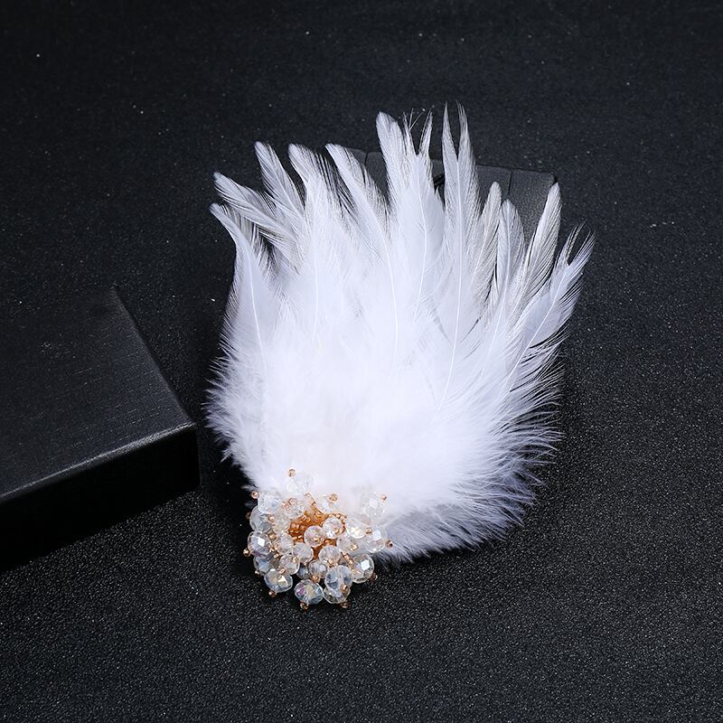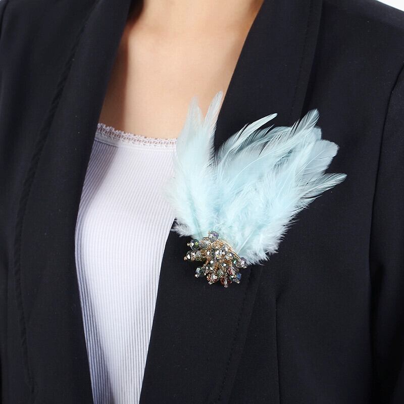 レトロな雰囲気のクリスタルフェザーブローチ高級フェミニニティコサージュブローチパーティーアクセサリー shipin87149067234
