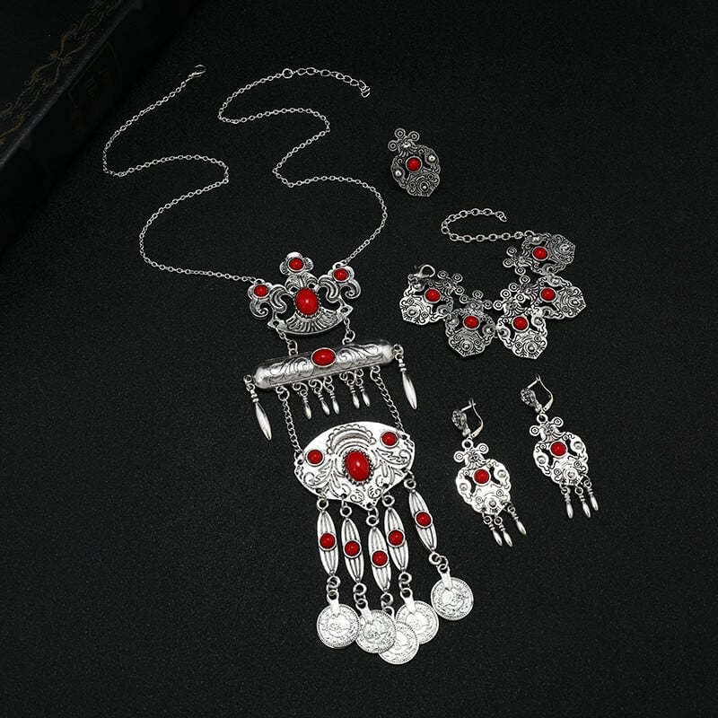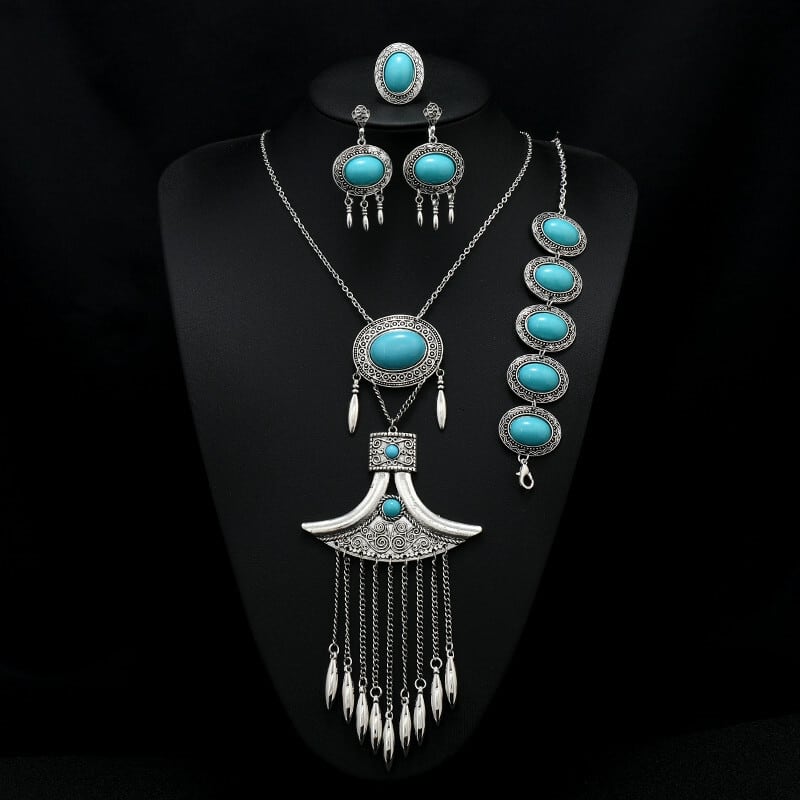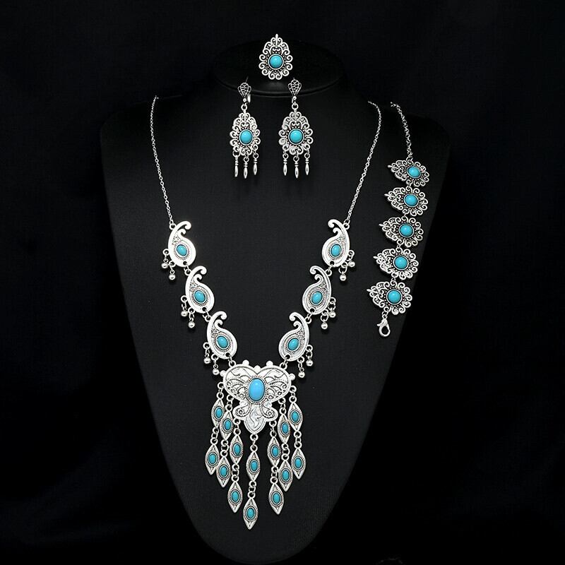ヨーロッパとアメリカのエスニックスタイルロングテルネックレスレトロエキゾチックボヘミアンバケーションブレスレットイヤリング旅行撮影セット レース 指輪 ヨーロピアン shipin2476316434