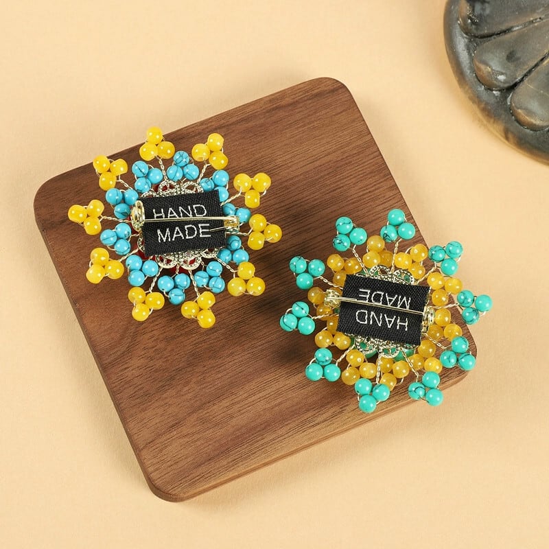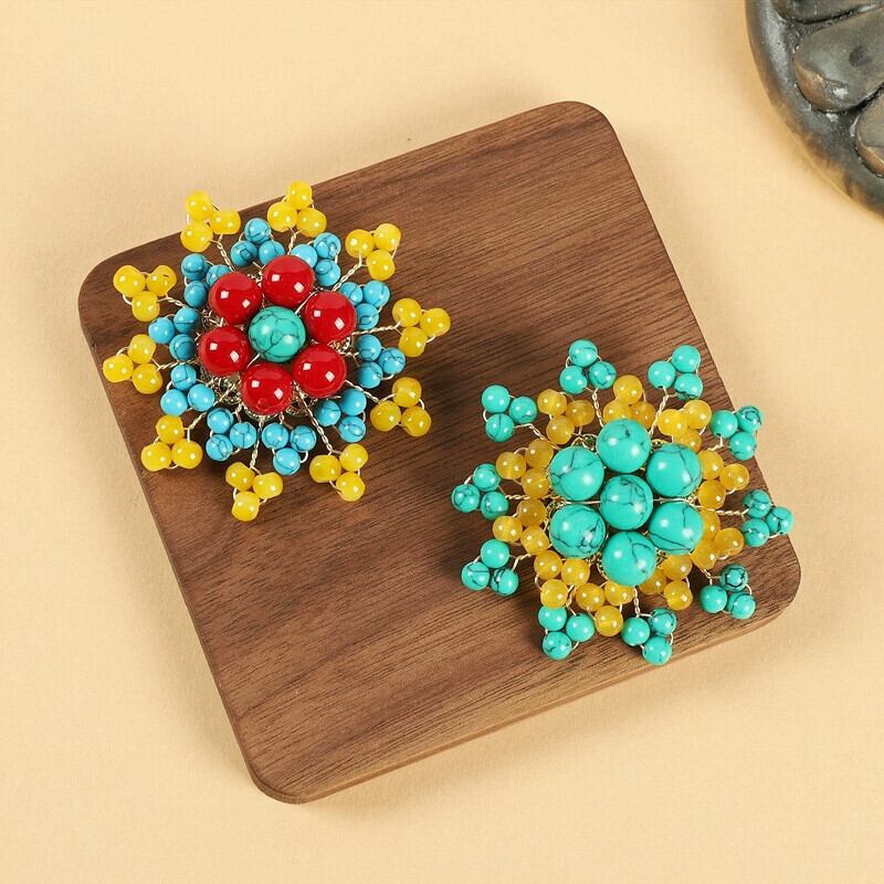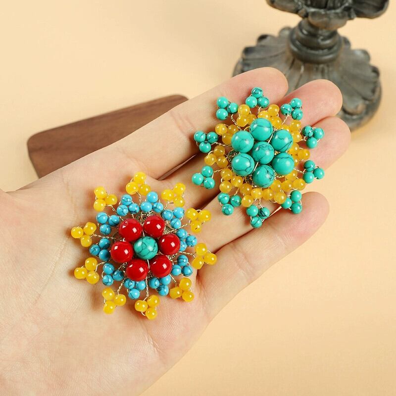 チベットカラーマッチングレトロビーズフラワーブローチニッチデザインエスニックスタイルジェンダーピンチベットエキゾチックコサージュ女性アクセサリー フラワーデザイン shipin94896427522