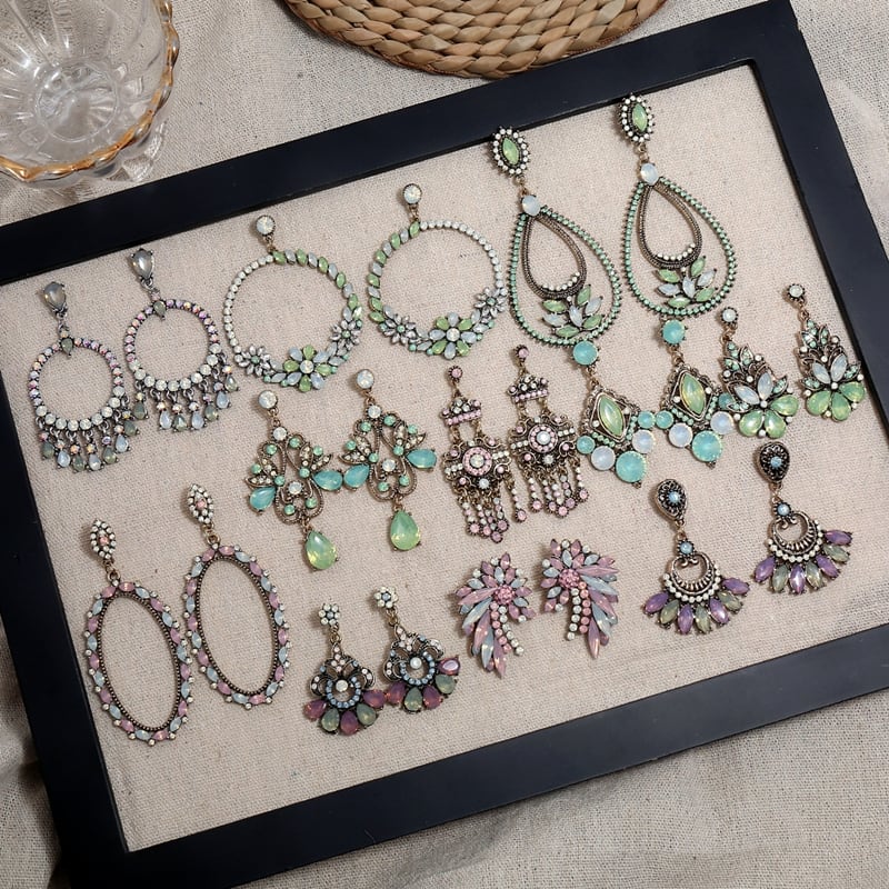 色:1-青と白の楕円形の円,2-楕円ピンク青の大きな円,3-水滴の小さな領域,4-ウォータードロップターコイズの花と葉,5水ドロップ六芒星,6-大きな領域の水滴,7-フルダイヤモンドの白と緑のリース,8-絶妙な水滴サークル,9.シンプルでレトロなラウンドダイヤモンド,10コートダブルバタフライ,11-レトロな小さな花の水滴,12-ヴィンテージウォータードロップフラワー,13-レトロな菱形,14-水色ピンクの花群,15レトロビッグウォーターペンダント,16レトロ半円,17ピンククラウンテル,18ピンクの宮廷花,19-レトロダイヤモンドダイヤモンド,20-小さな丸い水滴テル