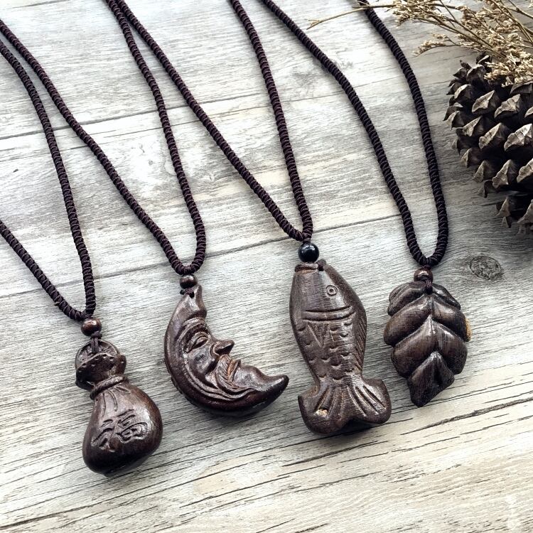 レトロな手彫りピーチウッドロングネックレスエスニックスタイルの女性のファッション気質綿とリネンの服セーターチェーンアクセサリー コットン レース shipin56137586776