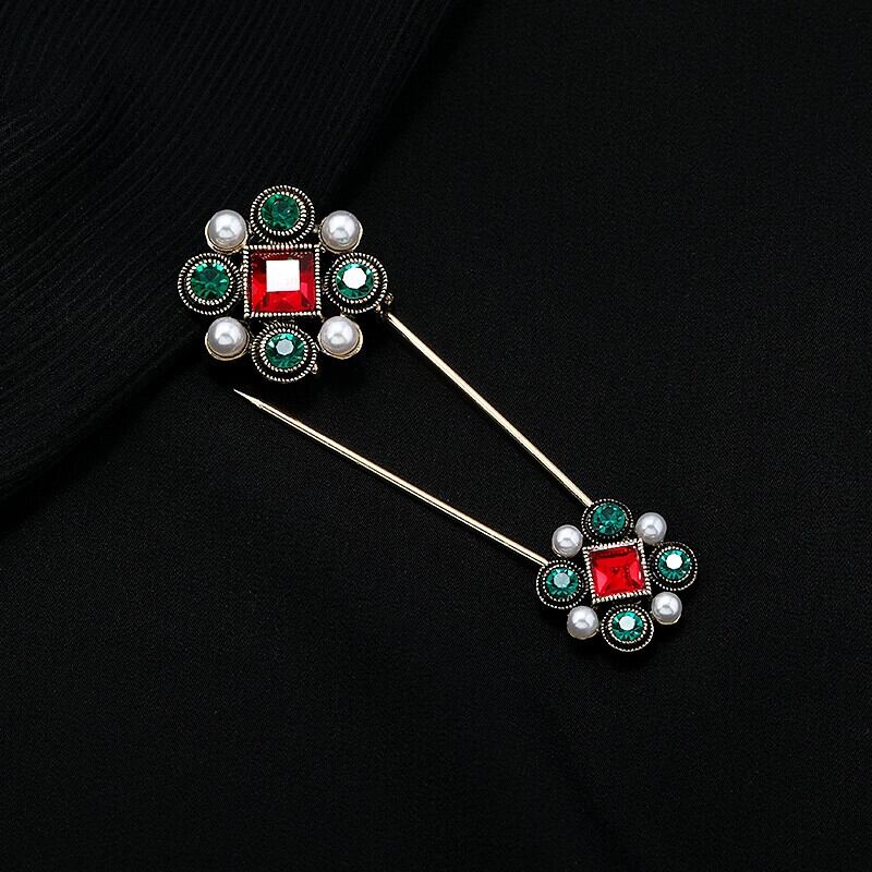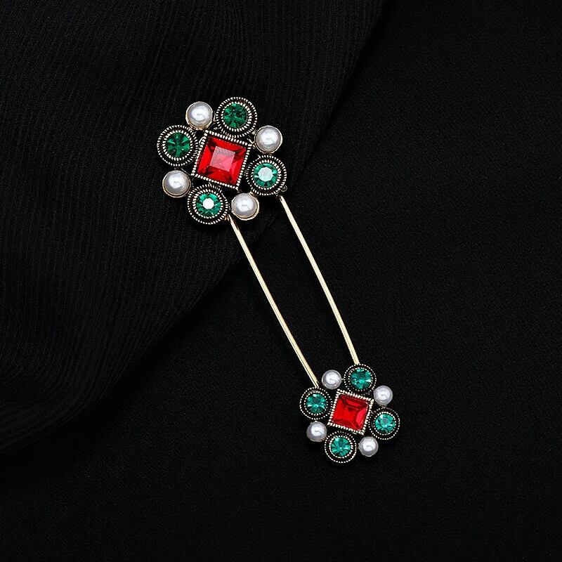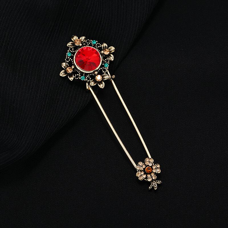 レトロなヨーロッパとアメリカのバロック宮廷スタイルのブローチ女性のハイエンド色の宝物クリスタルブローチスカーフショールバックルコサージュアクセサリー レッド ヨーロピアン shipin78490223799