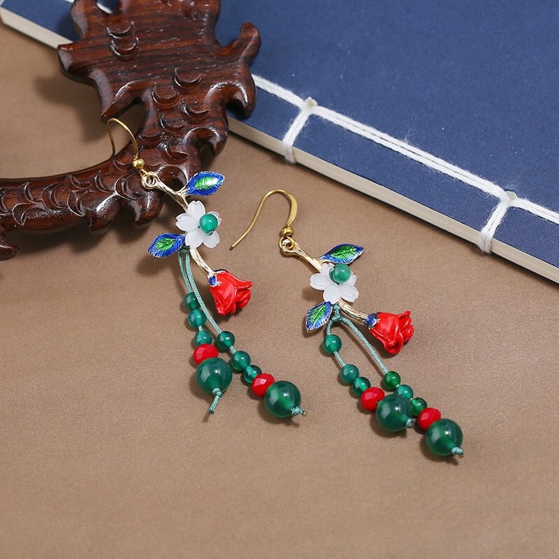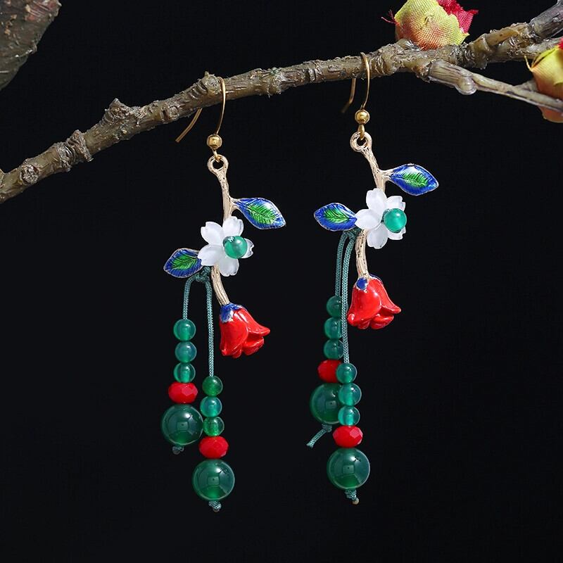 レトロエスニックスタイル瑪瑙シェルイヤリング手作りテルロングセクション女性らしさ宮殿イヤリング古代スタイルのイヤリング レース 指輪 shipin81863487331