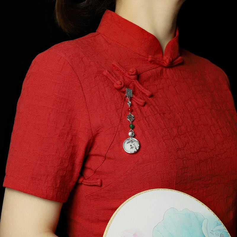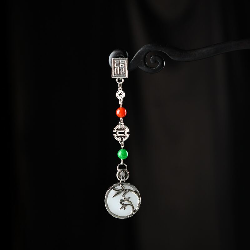 デザインこんにちは竹チャイナプレスバックルペンダントレトロシルバー電話ペンダントクリカル中国風韓服アクセサリー女性 銀 shipin18760457035