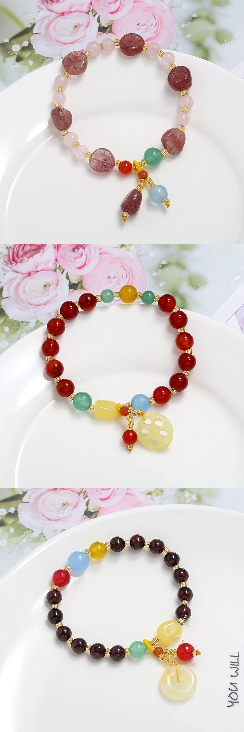 天然クリスタルストーンブレスレットアクアマリンストロベリークリスタルムーンストーンブレスレット女性の多用途セン部門レトロハンドジュエリー ナチュラル 藍玉 shipin47059409933