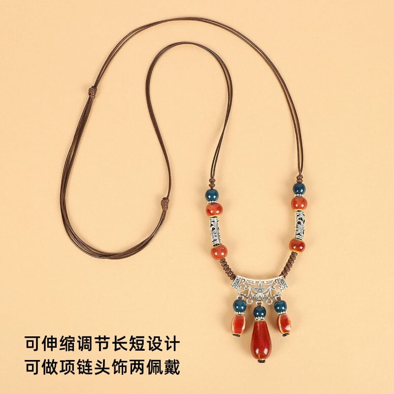 エスニックスタイルの頭飾りエキゾチックなスタイルの ehead 装飾セラミック水滴眉毛ハートペンダント古代スタイルチベット ehead チェーンネックレスジュエリー女性 レース shipin33097755901