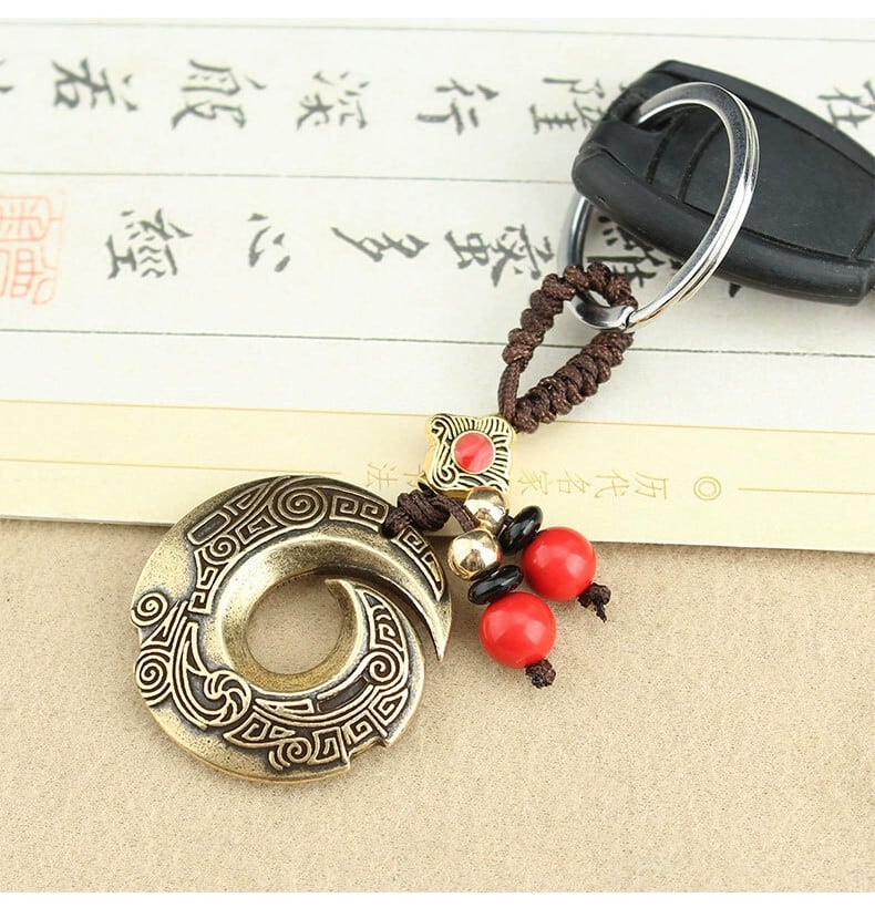エスニックスタイルアンティークドラゴンパターンフック織車のキーチェーンチェーン高級純銅レトロペンダントクリエイティブバッグ装飾品 ピュア shipin47547461081