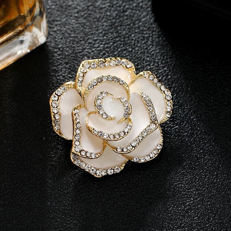 スタイル小さな香りの風椿クリスタルブローチ女性のハイエンド気質ブローチブローチ高級シルクスカーフバックルスーツアクセサリー shipin36040242456