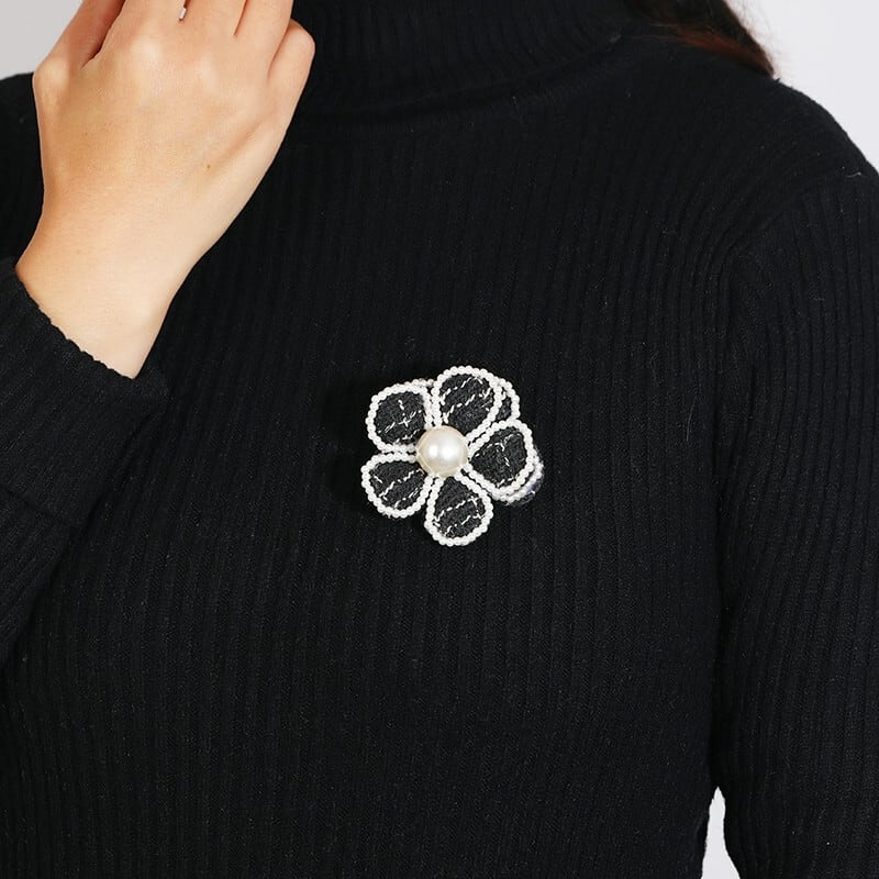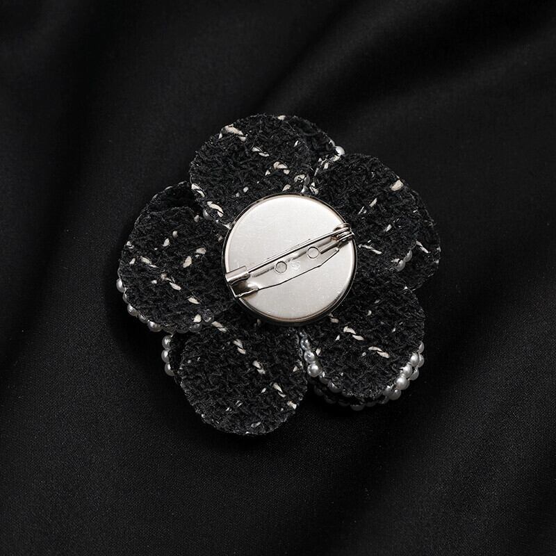 小さな香りエレガントな気質椿パールブローチクリック白黒カラーフラワーコサージュコートコートピン ホワイト ブラック 真珠 フラワーデザイン shipin91752150474