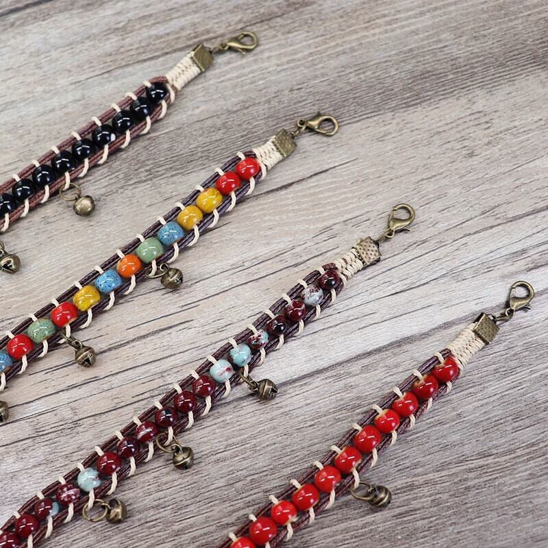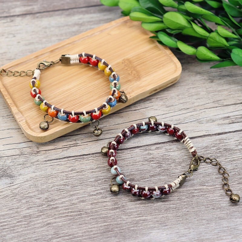 手織りエストシリーズセラミックベルブレスレット女性の小さな新鮮なオールマッチレトロシンプルな美しいハンドストリングジュエリー shipin58030178727