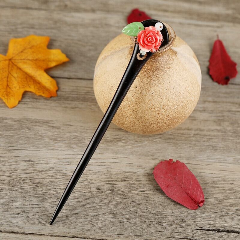 手作りレトロ黒檀古代スタイル韓服ステップシェイク電話ヘアピンジュエリープレートヘアシンプルな花のヘアピン頭飾り女性 フラワーデザイン shipin77167898812
