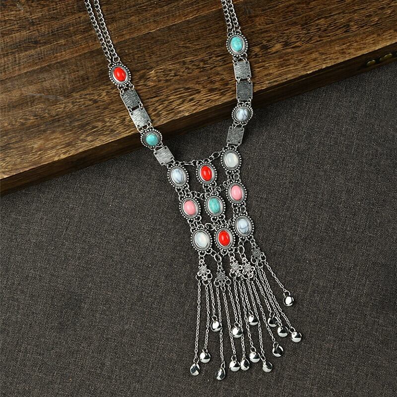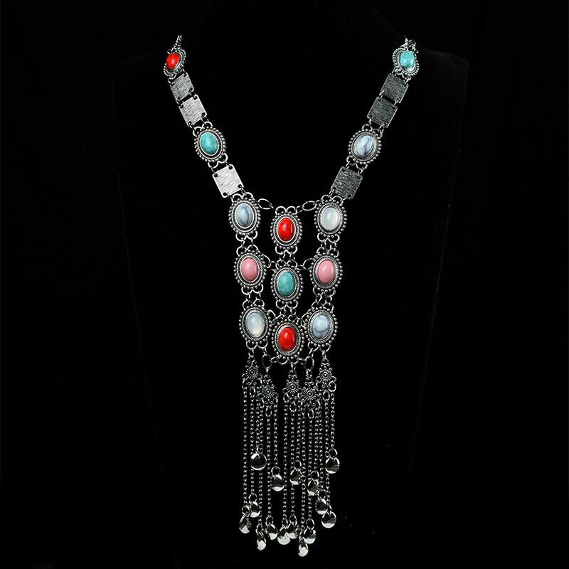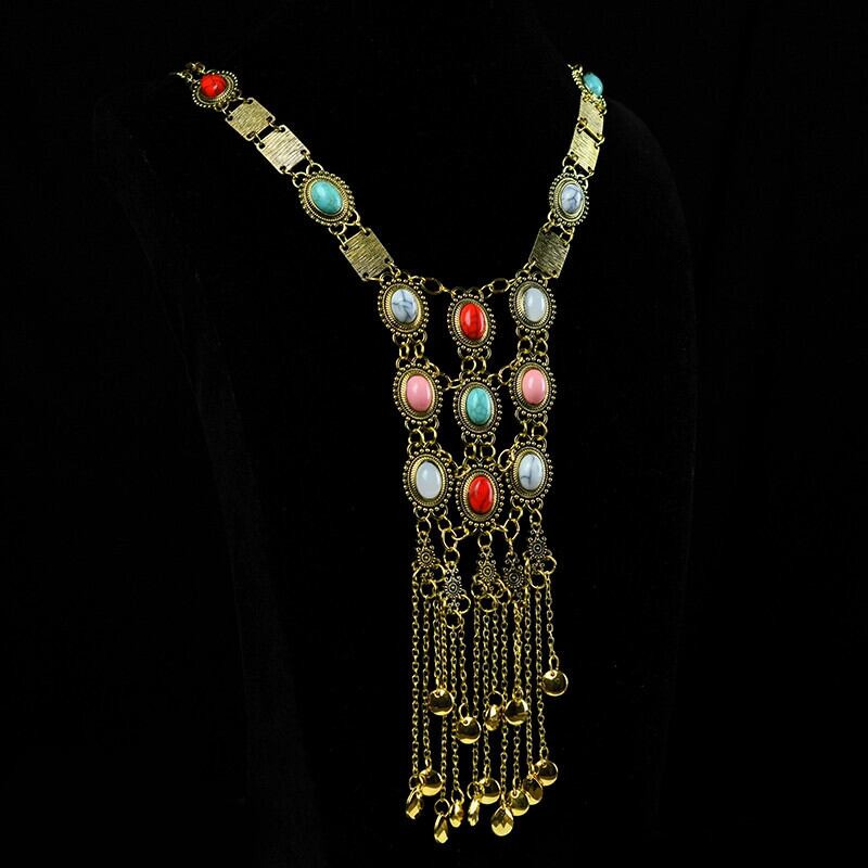 ヨーロッパとアメリカのエスニックスタイルターコイズテルネックレスボヘミア長い気質人格メタルペンダント女性レトロアクセサリー ロング レース ヨーロピアン shipin76411533527