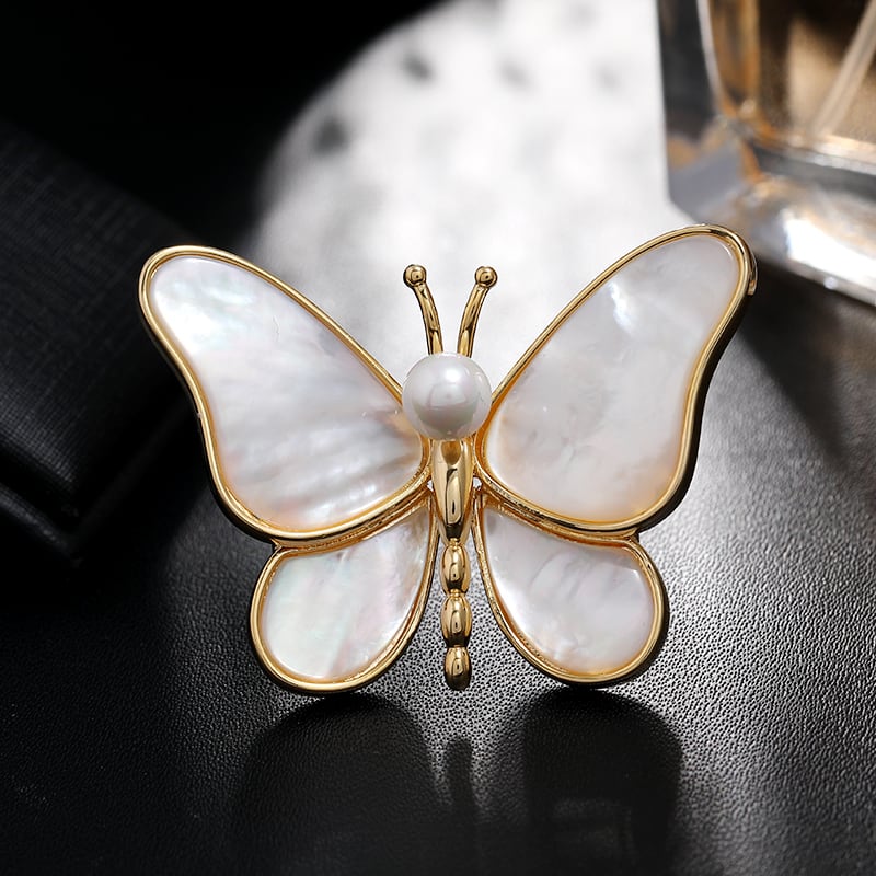 -グレード天然シェル蝶ブローチ女性のエレガントな気質軽い高級パールコサージュスーツピンアクセサリー ナチュラル 真珠 shipin60064584923