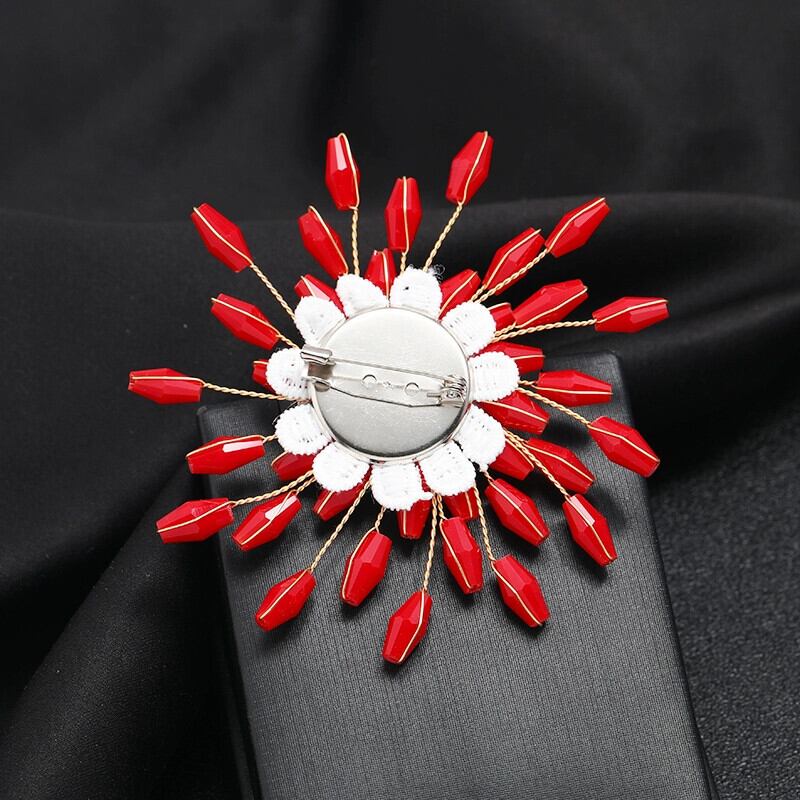 2022 トレンディなコサージュレトロレッドクリスタルパールスノーフレークブローチエンド気質ピンアクセサリー 真珠 shipin28008004409