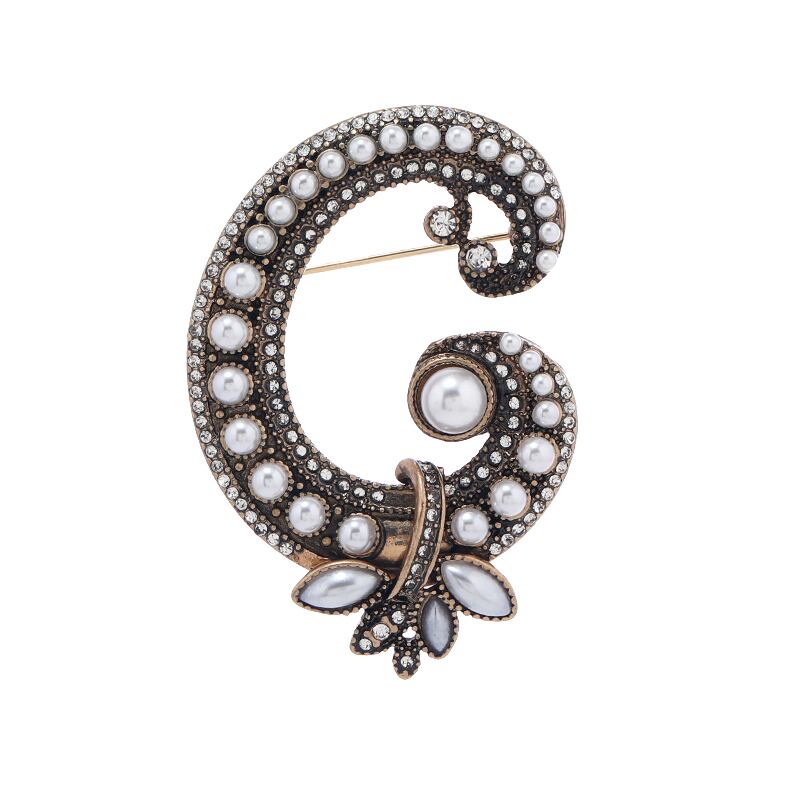 ヨーロッパとアメリカのレトロな文字 G ブローチ Amash ダイヤモンドがちりばめられたパールピン女性ニッチ気質ハイエンドスーツアクセサリー 真珠 ヨーロピアン shipin11217539673