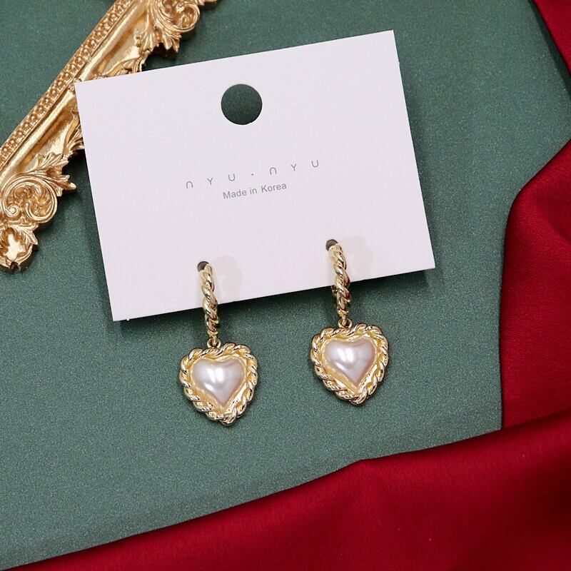 レトロな幾何学的なピーチハートイヤリングバロックパール女性の人格フランスのシンプルな気質イヤリング香港スタイルのイヤリング 真珠 指輪 shipin43181882819