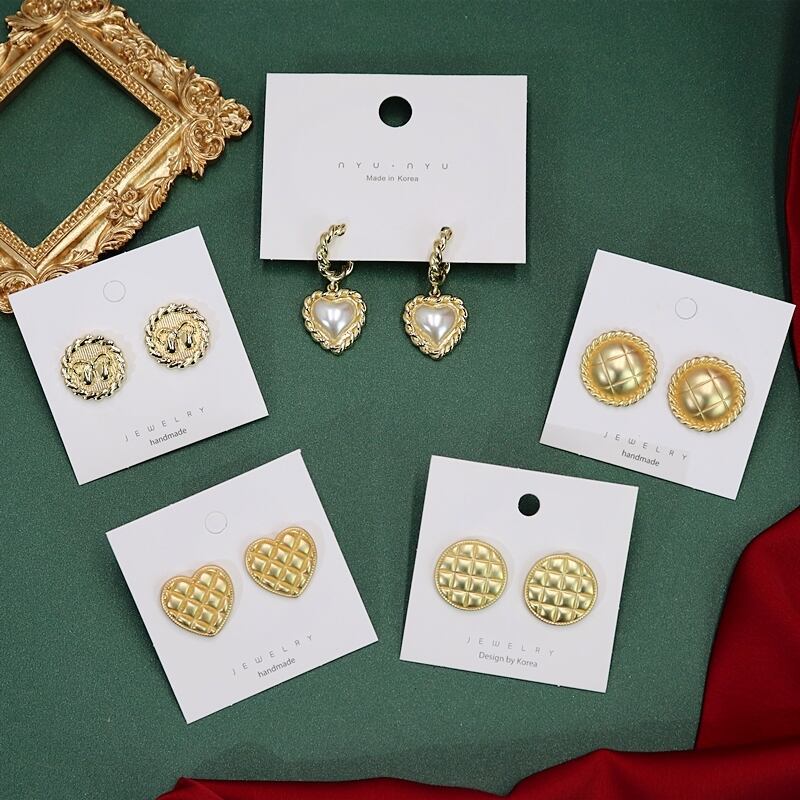 色:ダムゴールドパールハートペンダント(925シルバー針)1個,2ダムゴールドグリッドサークル(925シルバー針),3ダムゴールドグリッドピーチハート(925シルバー針),4-マットゴールド-編組メッシュ(925シルバー針),5ダムゴールドメタルリングバックル(925シルバー針),6ダムゴールドツイストロープサークル(シルバー925針),7ダム金ボタンリボン(シルバー925針),8ダムゴールド4バーダイヤモンド(シルバー925針),9ダムゴールドサンサークル(シルバー925針),10-金色の小さな天使(925シルバー針),11ダムゴールドスクエアグリッド(925シルバー針)