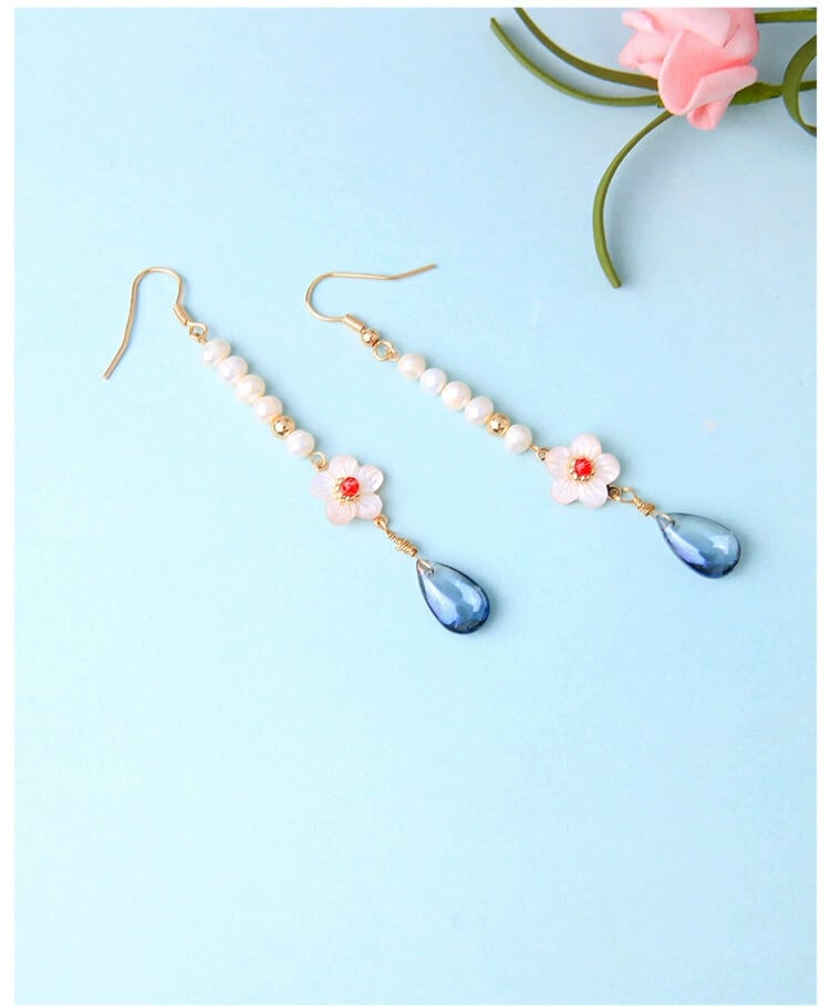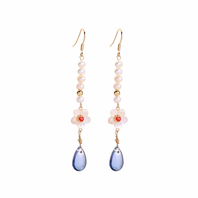 高級気質スーパーフェアリーウォータードロップイヤリング天然パールシェルイヤリングクリカルロングセクションフェイス薄型イヤリング女性 ナチュラル 真珠 指輪 shipin58872574543
