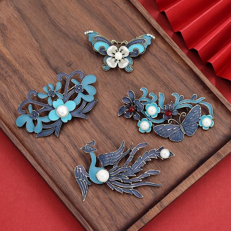 中国風のレトロな宮殿エナメルドットエメラルドブローチフェニックス蝶女性の気質エレガントなピンチャイナコサージュアクセサリー レース 翠玉 緑玉 shipin46470593124
