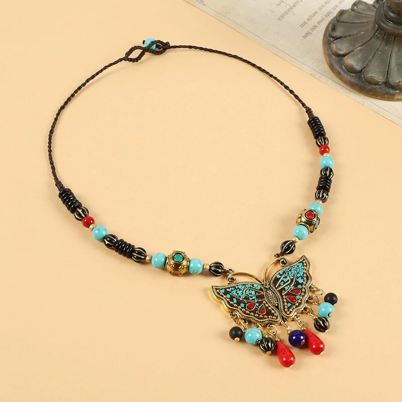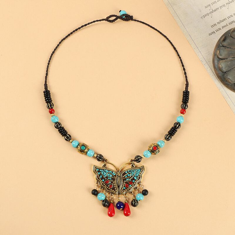 ネパール蝶ネックレスレトロエスニックスタイル鎖骨チェーンエキゾチックスタイル電話 ehead 装飾チベット頭飾り レース shipin7454094112