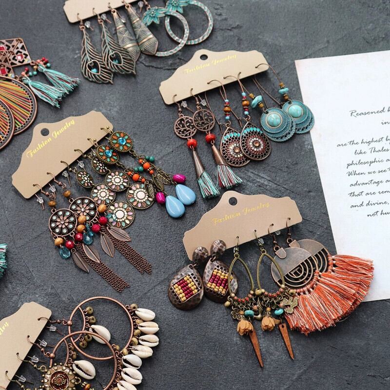 ボヘミアンエスニックスタイルイヤリングロングセクションレトロ休暇人格シンプルなイヤリング多用途イヤリングセット女性 指輪 shipin53921376248