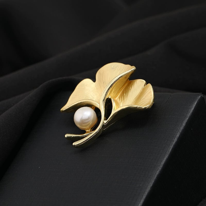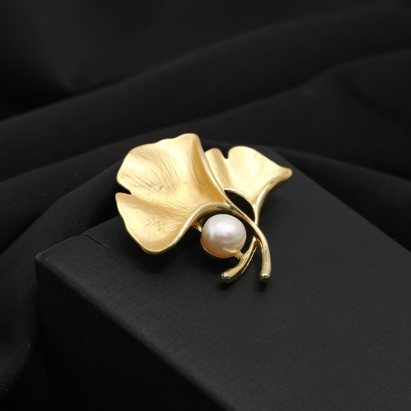 -end イチョウの葉淡水パールブローチ女性の繊細なシンプルダムゴールドコサージュ気質スーツピンアクセサリー 真珠 shipin81229869958