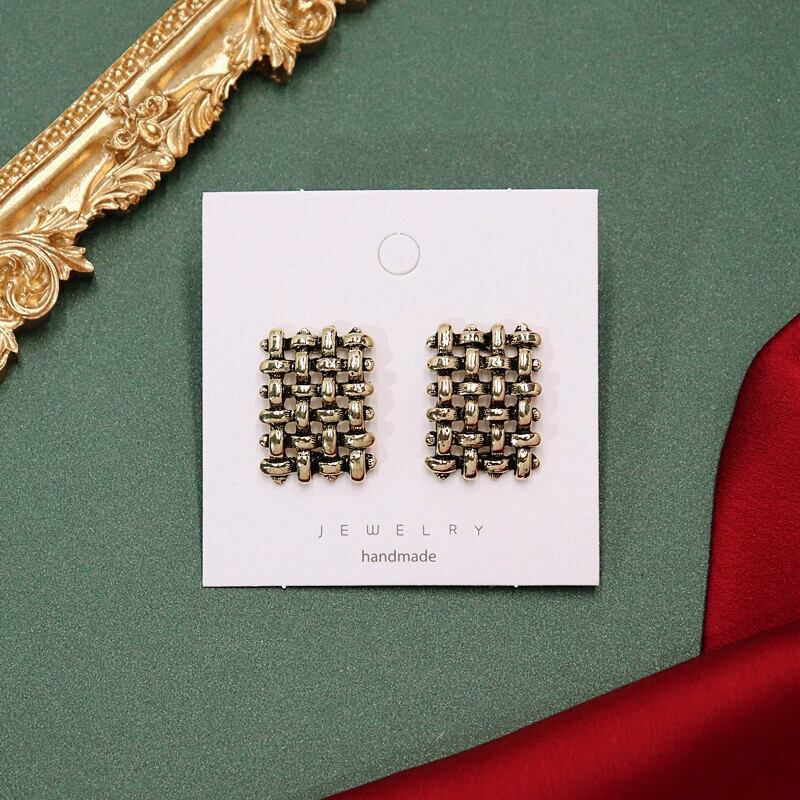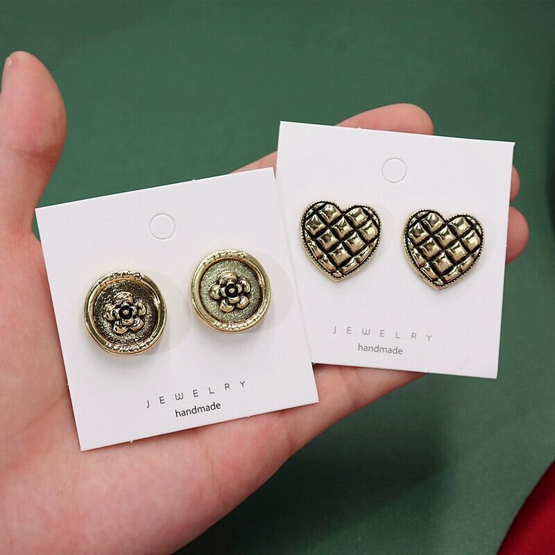 色:1-古代ゴールド-G文字(925シルバー針),2-古代金格子ピーチハート(925シルバー針),3-古代の金織りメッシュ(925シルバー針),4-古代金正方形グリッド(925シルバー針),5-古代の金光沢のあるラウンド(925シルバー針),6-古代ゴールドメタルリングバックル(925シルバー針),7-古代ゴールドクリスタルビーズキューブ(925シルバー針),8-古代ゴールドチェーンラウンドホワイトパール(925シルバー針),9-古代ゴールドチェーンラウンドレッドパール(シルバー925針),10-古代金撚りロープサークル(925シルバー針),11-古代の金ボタンの小花(925シルバー針),12-古代金四連菱形(シルバー925針),13-古代金日輪(シルバー925針)