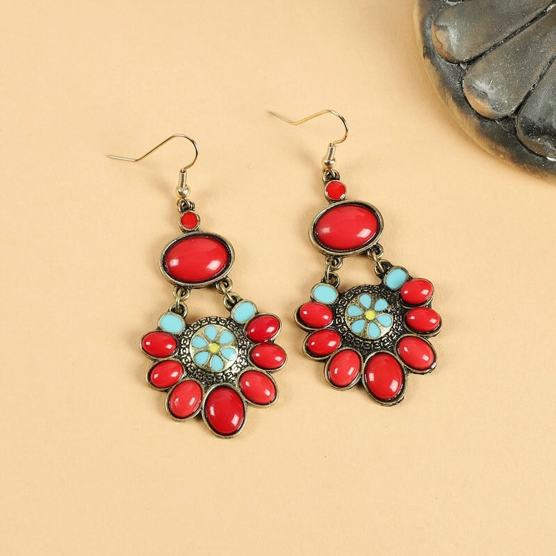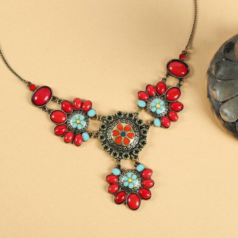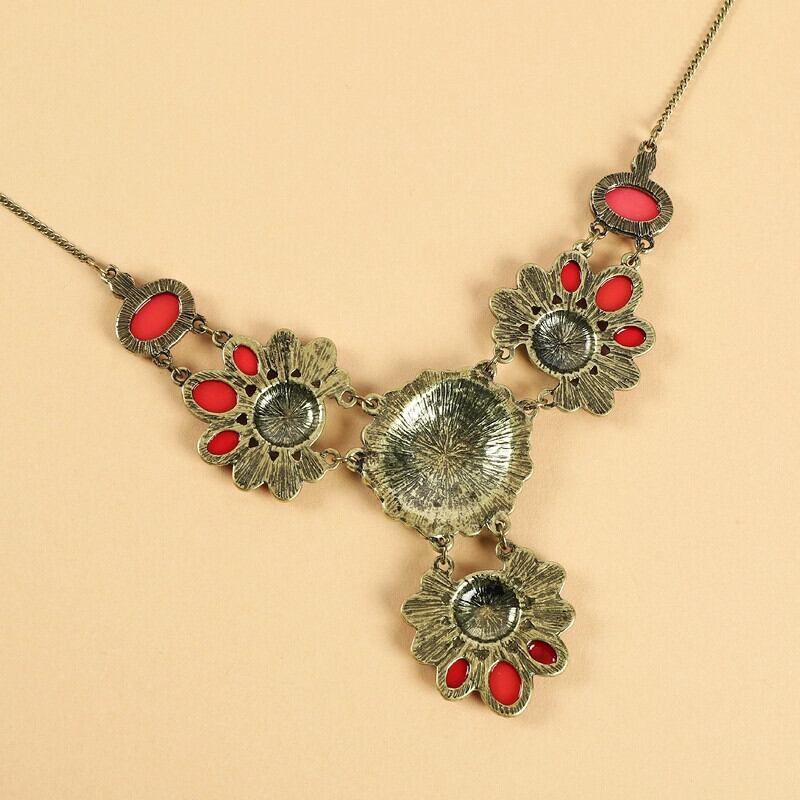 ヨーロッパとアメリカのニッチデザイン赤い花のネックレスレトロ宮殿スタイルの気質ブレスレットボヘミアンイヤリングセット女性 レッド レース 指輪 フラワーデザイン ヨーロピアン shipin83827859273