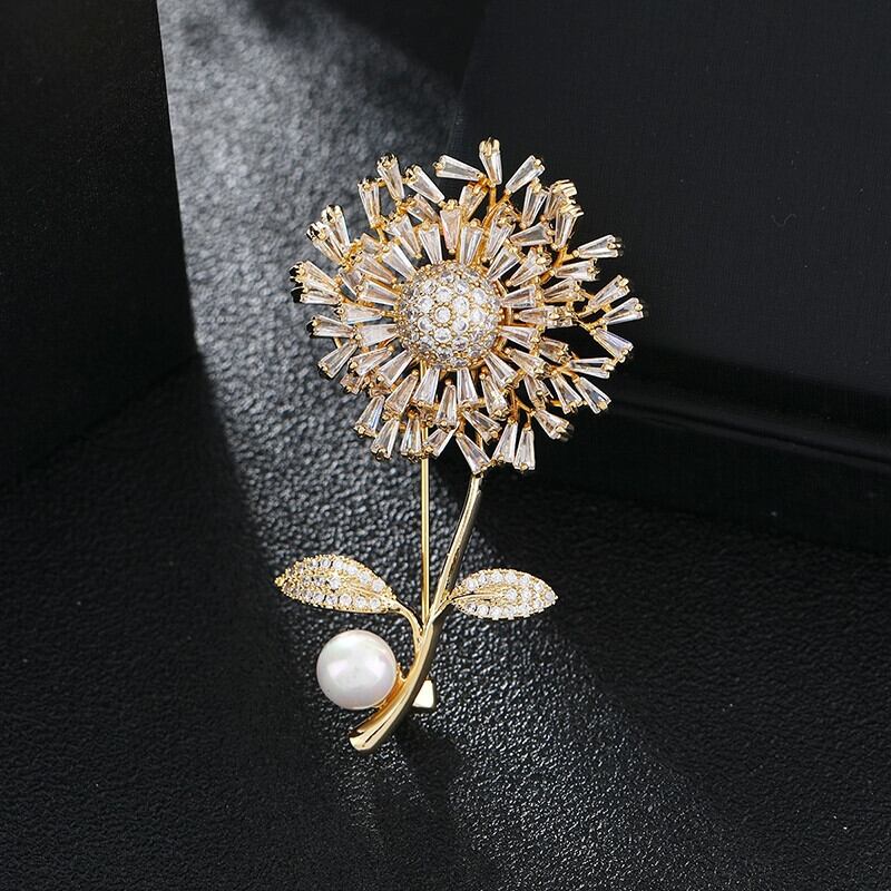 2022 トレンディなハイエンドタンポポの花のブローチ真珠の気質高級スーツコサージュセーターピンバックルアクセサリー パール フラワーデザイン shipin44486066904