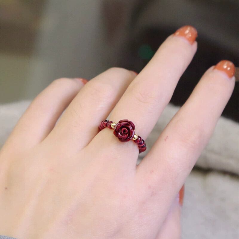 辰砂天然ガーネットパープルゴールドサンドリング干支牛リング出生年彫刻ビーズ花人差し指リング ナチュラル 指輪 フラワーデザイン 柘榴石 ざくろ石 shipin56588089302