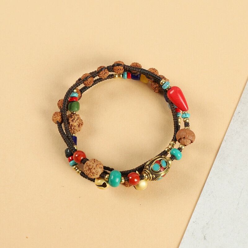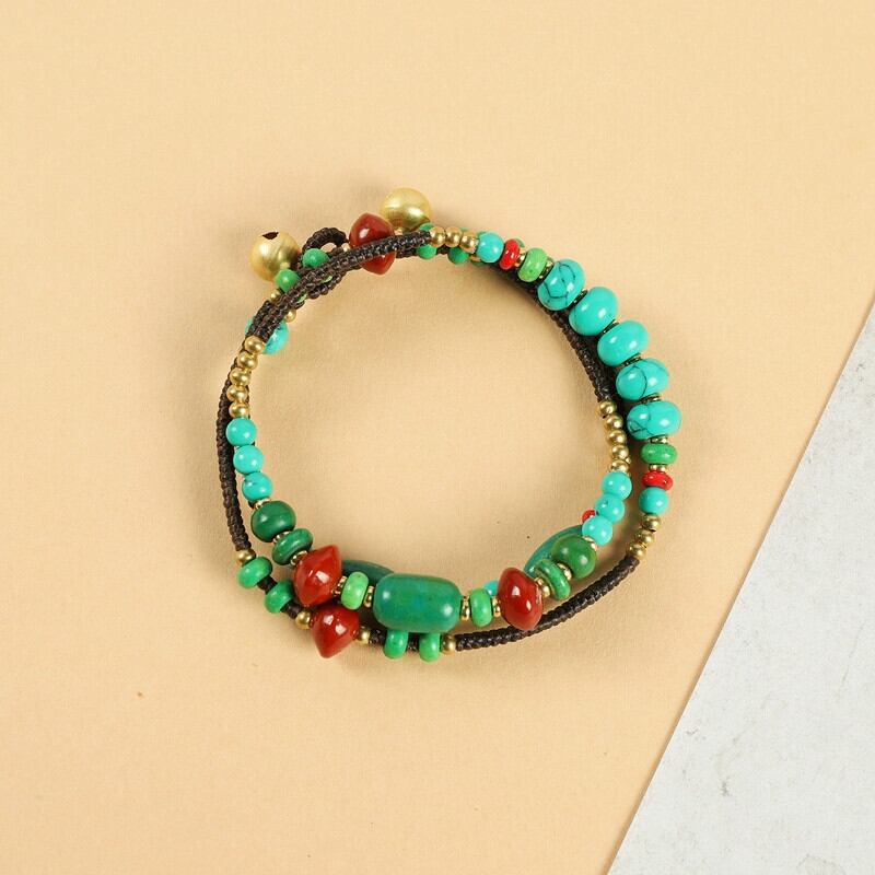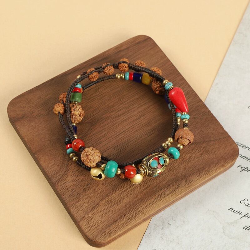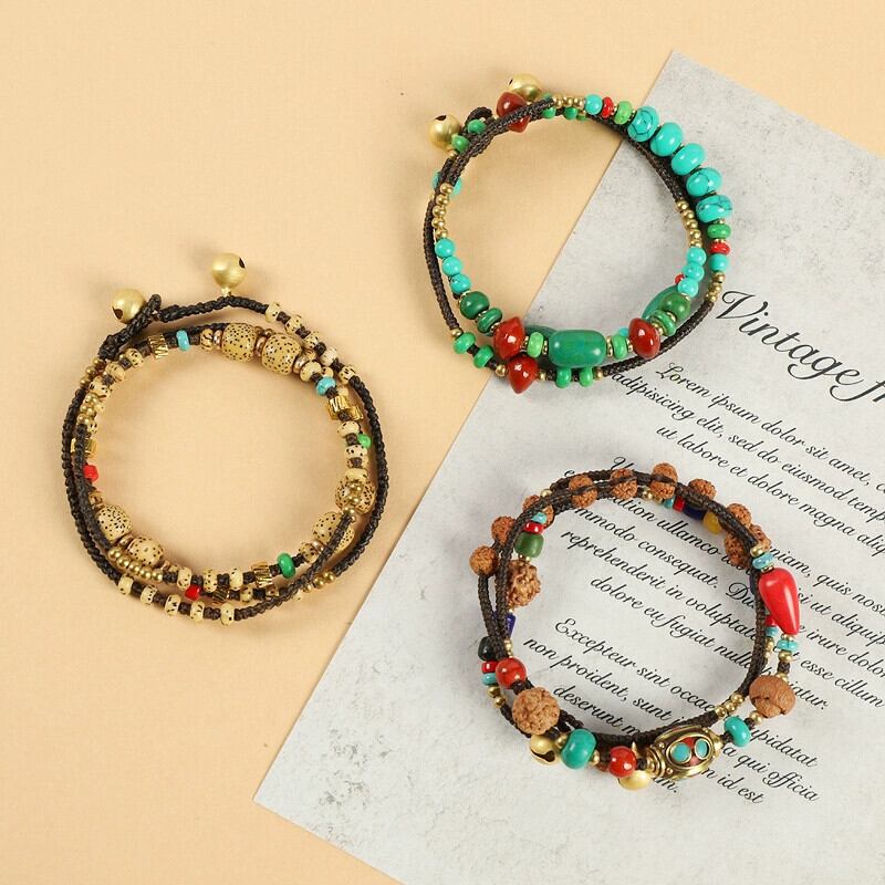 チベットのレトロなエスニックスタイルのターコイズ多層ハンドストリングニッチ菩提男性と女性のブレスレットネパール手作りネックレス レース shipin57910056114